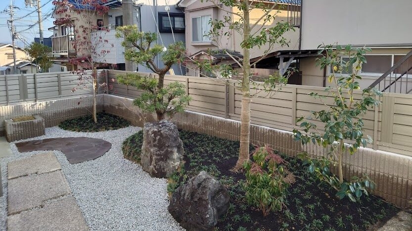 京都市 H様邸 造園・エクステリア工事 2025年10月28日 施工実績一覧に戻る 京都市 H様邸 造園・エクステリア工事木々や石灯籠を配置し、日本のわびさびを形にしました。 夏は緑豊かに、冬は諸行無常を感じられるお庭です。
